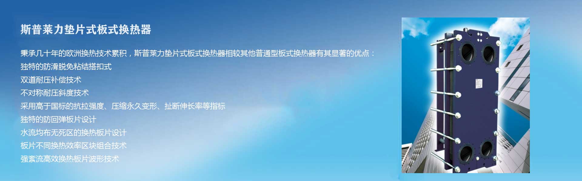 斯普萊力(CPHEX INTERNATIONAL)公司,一個(gè)具有三十多年開發(fā)研制經(jīng)驗(yàn)的專業(yè)生產(chǎn)換熱器及壓力容器設(shè)備的制造企業(yè),歐洲知名的板式換熱器品牌之一。由于其多年豐富的實(shí)踐經(jīng)驗(yàn)和專業(yè)技術(shù),今天,CPHEX 的產(chǎn)品已被廣泛地應(yīng)用于機(jī)械、食品、化工、冶金、能源及暖通空調(diào)等各種工業(yè)領(lǐng)域,深得客戶的信賴和支持。